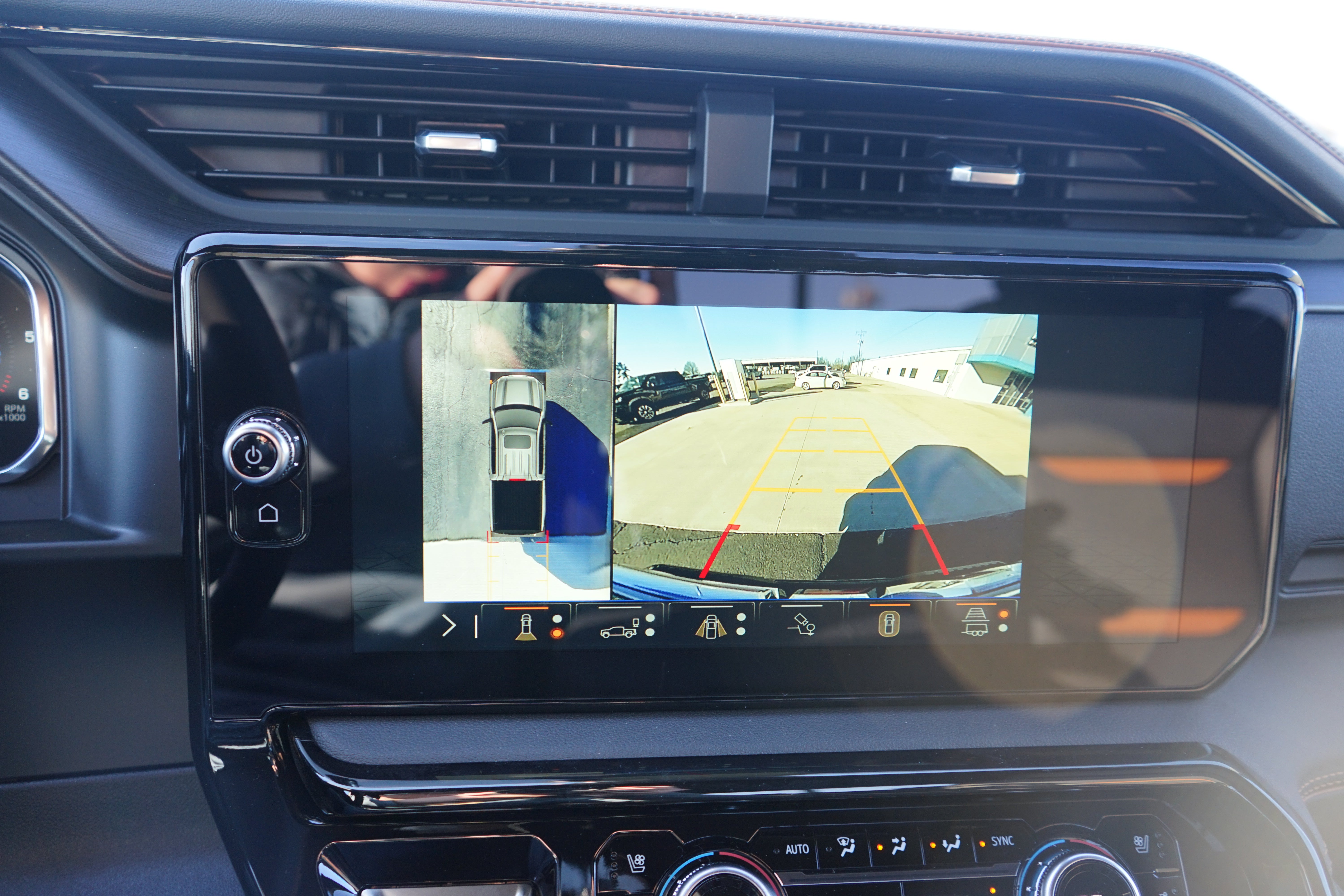 - Allows driver to see inside the cargo bed on the infotainment display to help with 5th wheel or gooseneck hitching and to check cargo